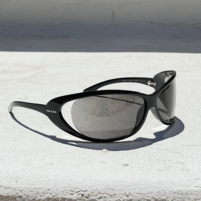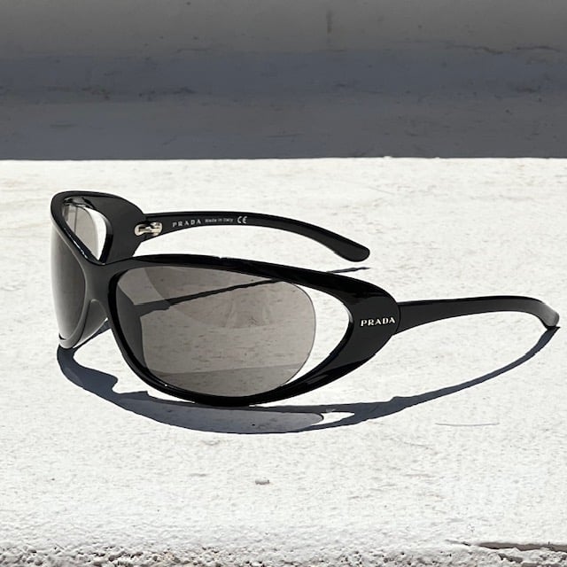 Prada Sport Black Oval Wrap Sunglasses